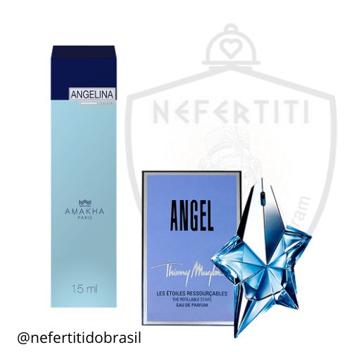 A fragrância feminina Angelina, inspirada no Angel de Thierry Mugler, é uma fragrância que causa prazer, como uma mordida de amor.
