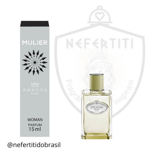 A fragrância feminina Mulier, inspirada no Prada Infusion D'Iris da Prada Milano, é para a mulher que se sente segura e confiante em sua própria pele. Uma fragrância fresca, que pode ser utilizada tanto de dia quanto de noite. Um perfume que a flora a confiança feminina.