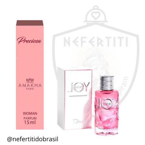 A fragrância feminina Preciosa, inspirada no Joy By Dior da Dior, é um perfume imediato, claro e generoso. A alegria é finalmente capturada num aroma marcado quer pela suavidade envolvente, quer pela energia. Explore toda a alegria e espontaneidade dessa fragrância suave e leve.